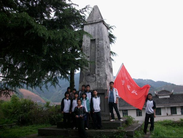 部分队员在寨市英雄纪念牌前留影
