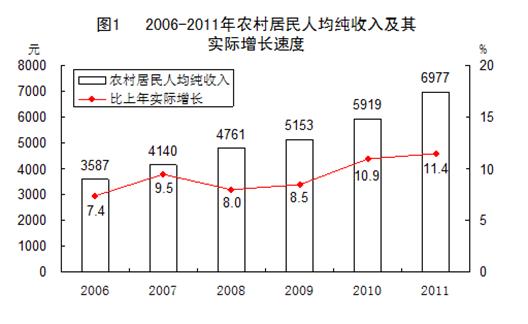 来越受到人们的广泛关注,阅读下列材料回答问题。 材料一:2006—2011年城乡居民收入及增长速度图