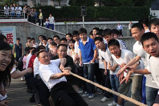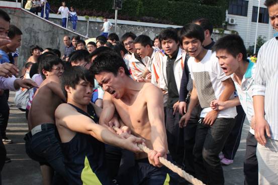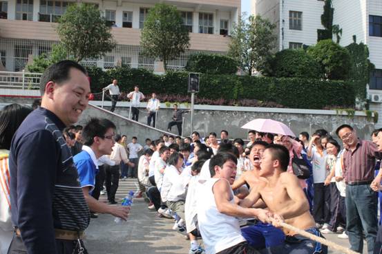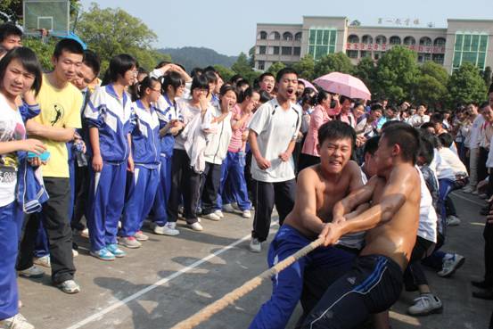 5月15日下午第7节课,绥宁一中全体行政领导和高三师生聚集在水泥球场,进行一场以缓解高三师生压力为目的的拔河比赛。 一年一度的高考即将到来,高三的任课教师和学生都面临强大的高考升学压力,绥宁一中采取晚自习停止授课、邀请知名学者讲学、制作高考宣传专栏等方式帮助师生轻松备考,本次举行的拔河赛也是帮助师生减压的措施之一。各班挑选出15名男同学,5名女同学参赛,3名任课教师参与指导。学校全体行政领导和部分高三任课教师也以表演赛的方式进行对垒,与学生共同感受体育竞技的快乐。 比赛结束后,同学们纷纷表示,拔河比赛既让大家感受到团队协作的重要性,又通过放声呐喊宣泄学习的沉闷,既调整了心态,又凝聚了意志。