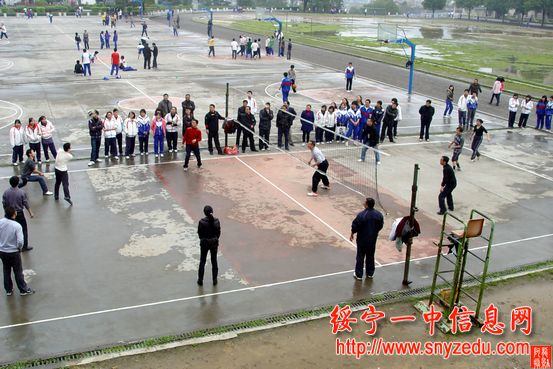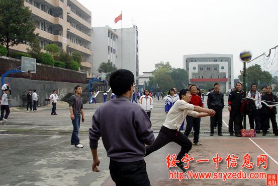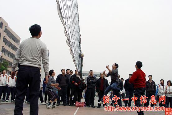 4月7日下午上完课后,绥宁一中全校党员在排球场举行了党员排球比赛开幕式,学校党总支书记肖华平宣布党员排球赛开幕。第一场比赛由甲1队(伍贤斌代表队)对甲4队(刘声森代表队),通过紧张激烈的比赛,甲4队获得了第一场比赛的胜利。 这次党员排球赛共分8个队,初赛共12场比赛。设一等奖1名,二等三等奖3名,三等奖四名。