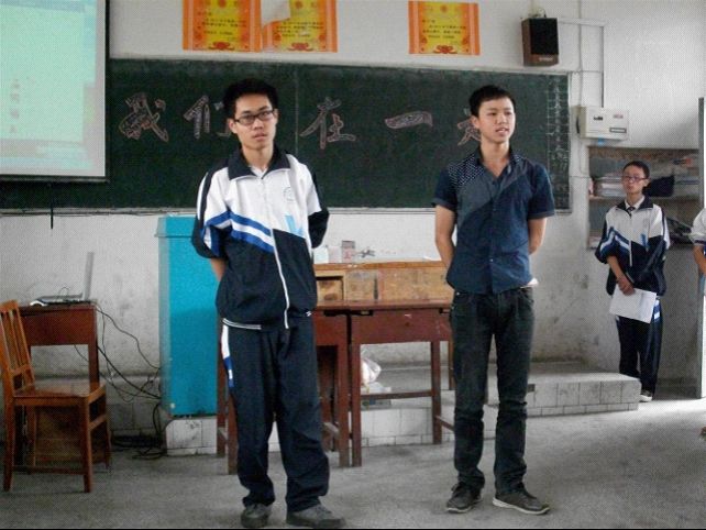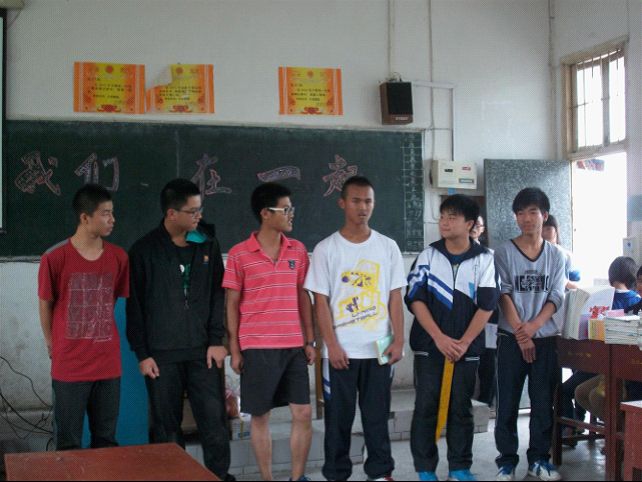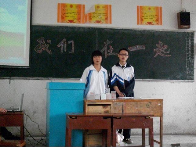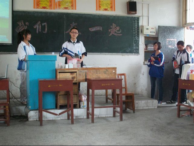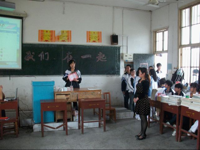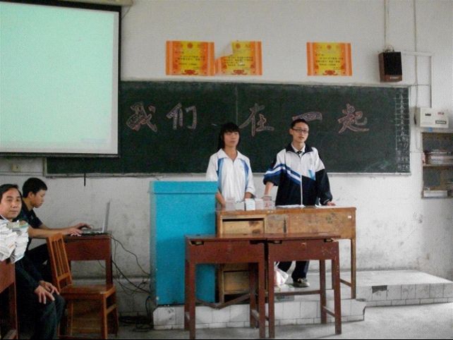 绥宁一中德育活动课观摩评比 381班主题班会--我们在一起 内容提纲: 1、看视频(教师教育教学、辅导,学生课余生活、课外活动开展等)。 2、对教育视频的感悟:畅谈梦想(副班长组织这次班会的感悟,小合唱--朋友……)。 3、小品:“拳打镇关西”(禽流感的根源--卖鸡老板镇关西)。 4、给本班所有任课教师颁发荣誉证书及奖品(我们心目中的教师形像奖)。