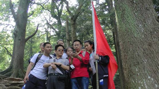 学生们在铁杉林认真听杨世开老师讲解相关知识