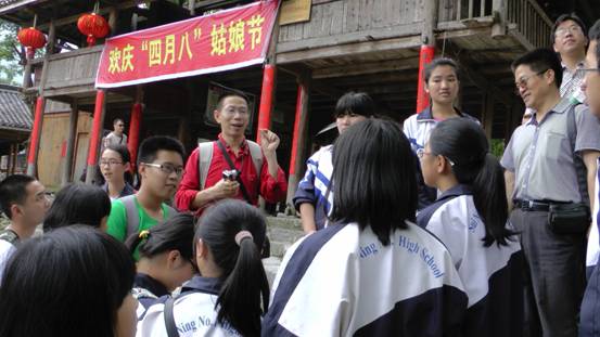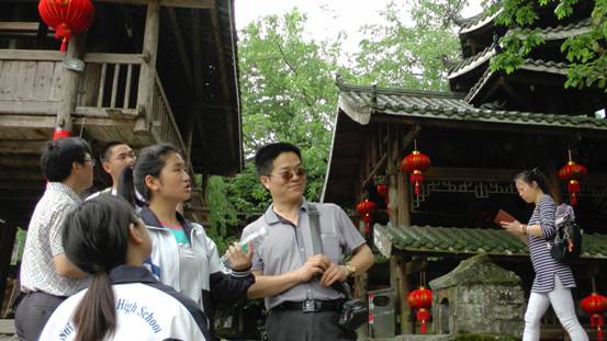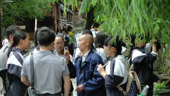 罗从友老师给学生讲解上堡古国村寨的生态文明保护和建设