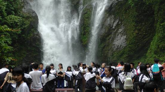 学生在曲幽谷六鹅洞瀑布享受大自然的沐浴 |