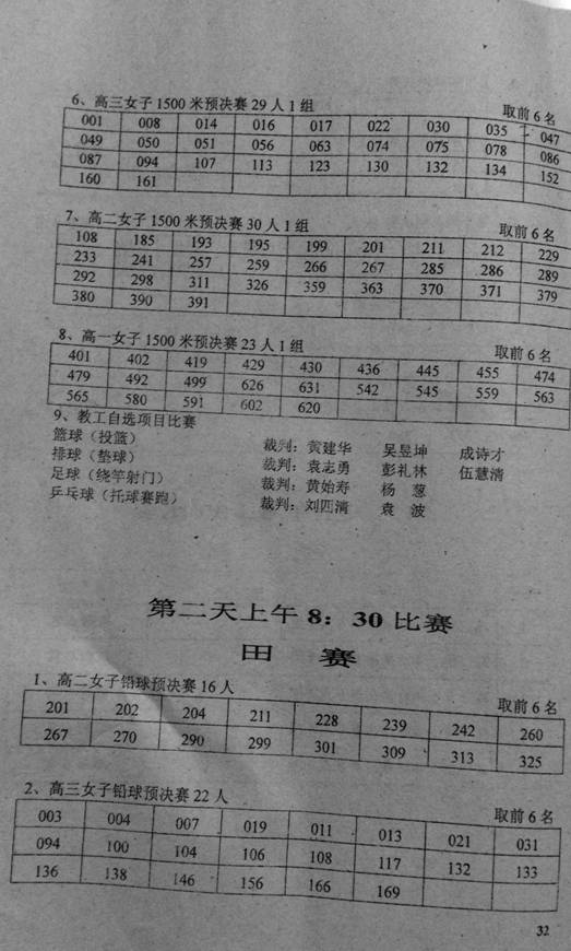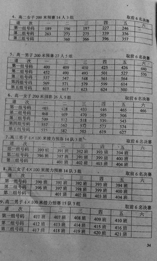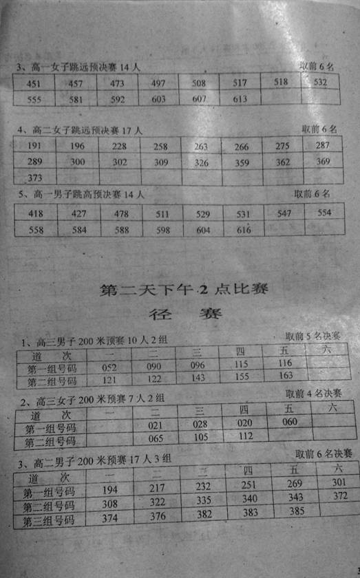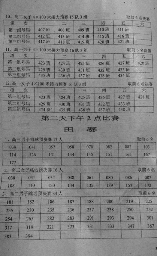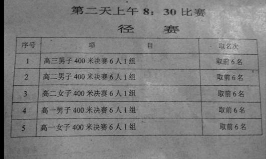 2015年秋季田径运动会竞赛分组安排表(第二天)