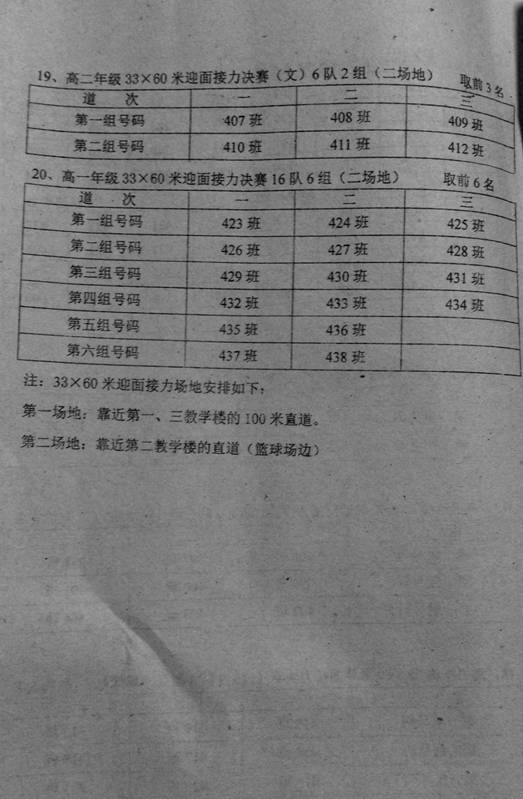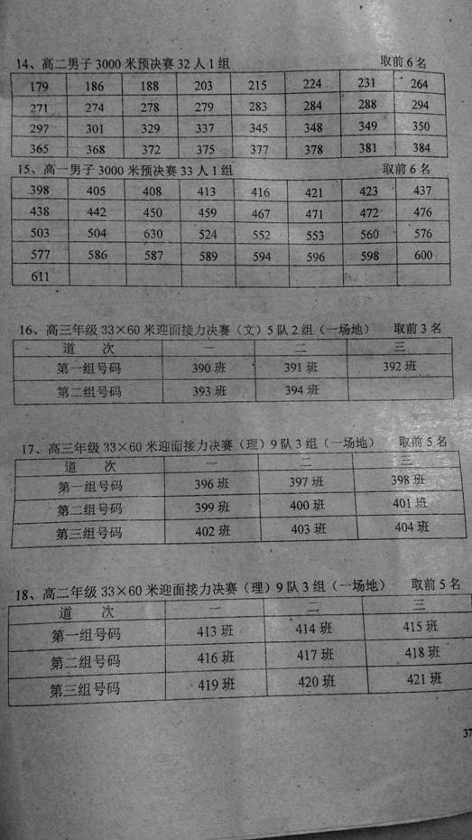 2015年秋季田径运动会竞赛分组安排表(第二天)