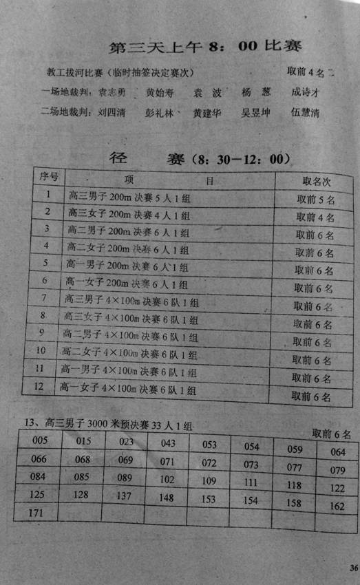 2015年秋季田径运动会竞赛分组安排表(第三天)