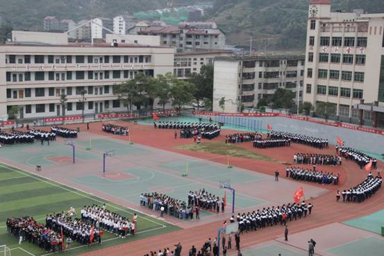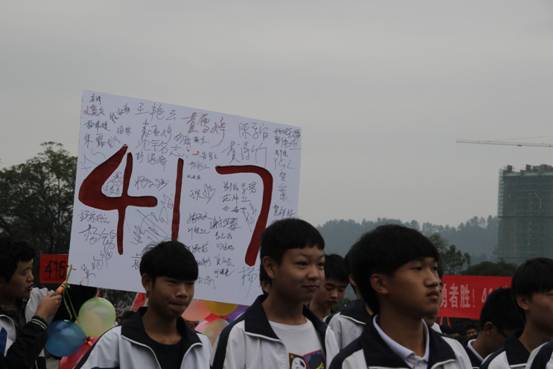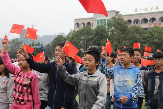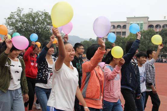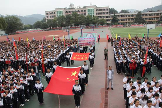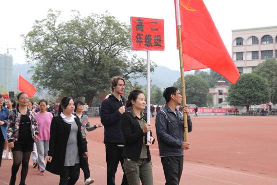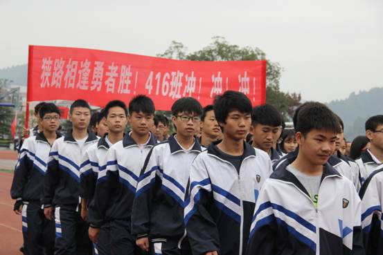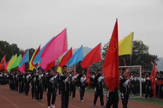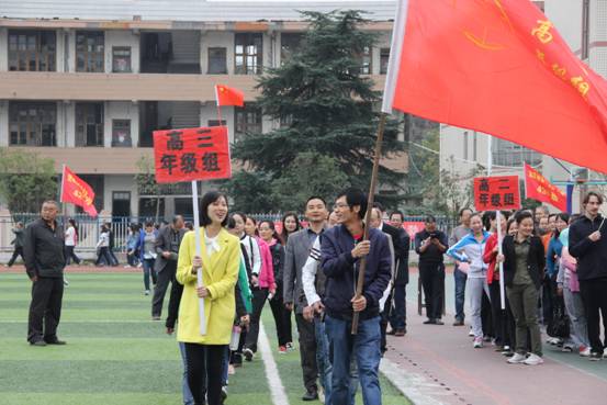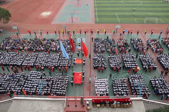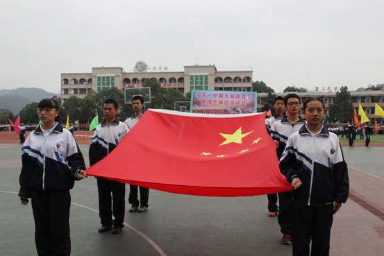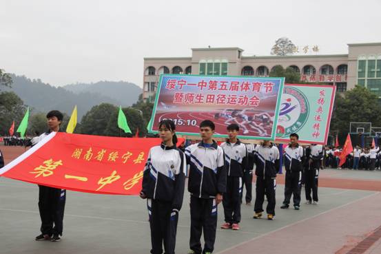 8点10分,伴随着《运动员进行曲》的铿锵节奏,各方阵在主持人富有激情和感染力的解说中,迈着整齐的步伐环绕田径场一周到达主席台下。走在最前面的是手举着国旗、校旗、会徽及彩旗的队伍,他们精神抖擞,步调整齐,气宇轩昂;紧随其后的是英姿飒爽的各个班级方阵队,大家迈着锵铿有力的步伐,用挥舞的红旗、彩色的汽球、激情澎湃的横幅和印有向征着体育运动不屈精神的脸贴向我们展示青春的风采;最后出场的各年级教师和行政管理人员方队更是本次运动会一道亮丽的风景线,同学们用最热烈的掌声和欢呼声迎接老师的到来。整个入场式可谓精彩不断、亮点纷呈,展现了绥宁一中师生的风彩。 运动员入场完毕后,全场肃立,面对着冉冉升起的五星红旗,奏唱国歌。紧接着,裁判员代表和运动员代表分别宣誓,最后,校长唐立新宣布运动会开幕。第一个项目为各班跑操比赛,我校的跑操活动经过坚持不断的训练已经日趋完美,同学们在 此次田径运动会历时3天,参与人数达3000余人,是绥宁一中有始以来参赛人员最多的一次盛会,除了常规的田赛与径赛项目外,新增了教工的迎面接力赛、拨河赛、球类自选项目比赛,每班派出33人且必须有任课教师参加的迎面接力赛更是本次运动会参与人数最多、最受关注也最能体现师生合作默契程度的项目。运动会的召开对于提高同学们自身素质,促进学校各项工作的开展,具有十分重要的意义。