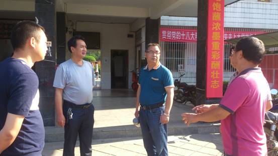 县活动中心杨友辉主任、中鸣湖南李晓峰经理、学校唐立新校长等领导在讨论机器人问题