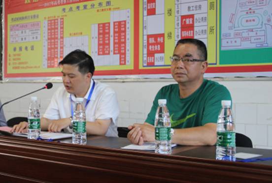 6月6日上午,绥宁一中考点200余名高考工作人员在考点办公室召开2017年全国普通高校招生考试考务人员会议。巡视组组长、邵阳市教育局王治军指示,全体考务人员要强化责任意识,认真履行职责;严格环节管理,确保平安高考;加强协作意识,圆满完成任务。考区主任、副县长戴蹇吾要求,所有参与考务工作的同志都必须统一思想,加强责任意识;认真培训,明确岗位职责;规范操作,严肃考风考纪;关爱学生,营造良好氛围。考点主任吴才录从端正工作态度、严格规范操作、严守考务纪律、加强后勤保障等方面提出明确要求,希望大家高度重视、服务考生,确保高考平安稳定进行。副考务长贺占宏组织观看监考员操作模拟视频,讲解绥宁一中考点的基本情况、人员分工等,最后,工作人员分组学习工作规程,通过反复学习熟悉操作流程,做到试前工作充分到位、零失误,确保高考平稳顺利。