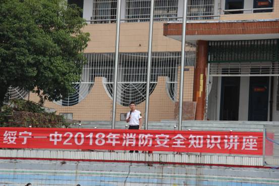 为了进一步加强校园安全工作,增强学生的消防安全知识,我校在2018年高一新生军训期间,安排了一场形象生动的消防应急演练活动。8月29日上午,一阵急促的警报声拉开了“师生安全疏散演练”活动的帷幕,听到警报声,教官和班主任老师到达指定岗位,指导学生快速疏散,学生捂住口鼻,沿着学校指定楼梯口快速前进,有序撤离到学校操场的安全地带。安全疏散完毕后,湘安消防公益服务中心主任教官杨文锋通过生动具体的实例,对火灾的预防、火场自救及逃生方法等消防安全基本常识进行了讲解。接着,绥宁县消防中队的队员们演示了从出警到救险的整个过程,消防员快速的反应和专业的技能博得了同学们一阵阵热烈的掌声。最后,教官现场演示了灭火器的操作程序, 同学们积极参与,通过实践掌握了灭火技巧,提升了对火灾处理的应急能力。 这次消防演练活动的顺利完成,使抽象的安全演练变成具体的实战演习,高一新生了解了灾害发生时的基本应对措施,增强了自护自求能力,也切实加强了学校的安全教育工作,为创建“平安和谐校园”夯实基础。