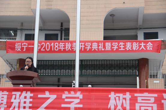 9月10日上午,我校隆重举行2018年秋季开学典礼暨学生表彰大会。大会由党总支副书记、副校长周本流主持, 3000余名师生学生参加了本次活动。 开学典礼在庄严而雄壮的国歌声中拉开序幕,全体师生整装肃立,五星红旗冉冉升起。升旗仪式后,同学们举起右手,以绥宁一中学生的名义宣誓:知荣明耻,严守校规、坚毅自信……。教师代表、学生代表、家长代表分别发言。唐立新校长新调入学校的14名老师、来自长沙市的4名支教老师及872名新同学的到来表示热烈的欢迎,在第34个教师节到来的日子,向辛勤工作、乐于奉献,为学校发展做出贡献的全体教职员工致以崇高的敬意。希望全体一中人与青春共舞,与世界相融,学生做“有理想有抱负、有爱心会感恩、有责任能担当、有自由能自律”的新时代青年;老师以孩子的成长为核心,不功利、不媚俗;学校以立德树人为教育的根本任务,大力培育和践行社会主义核心价值观,办适合的教育,办人民满意的教育。最后,贺占宏副校长宣读2016级学业水平考试优秀学生奖、2018级优秀新生奖、2017级期末统考优秀学生奖、北大筑梦行动优秀学生奖。本次大会共计发放奖金300020元,科学的奖惩机制鼓舞了大批渴望上进的学生,新的学期的第一次学生大会,从树立榜样,明确目标开始。 开学典礼在热烈的掌声中圆满落幕,我校又迎来了新的起点。新的学期,开启新的希望,承载新的梦想,在新学期里,全体师生一定会齐心协力,用智慧与汗水谱写绥宁一中崭新的篇章,我们相信,在全体师生的不懈努力下,在领导、社会和家长的大力支持下,绥宁一中一定会迎来更加灿烂辉煌的明天。