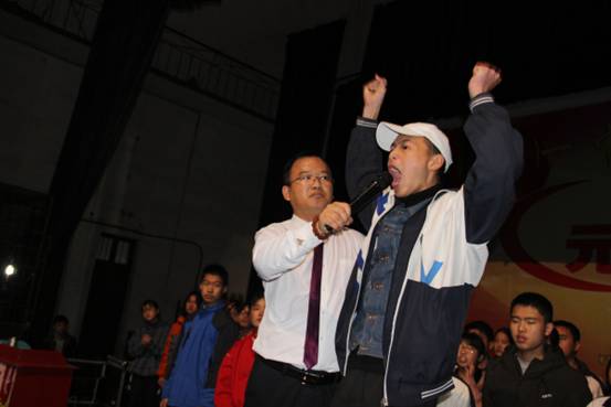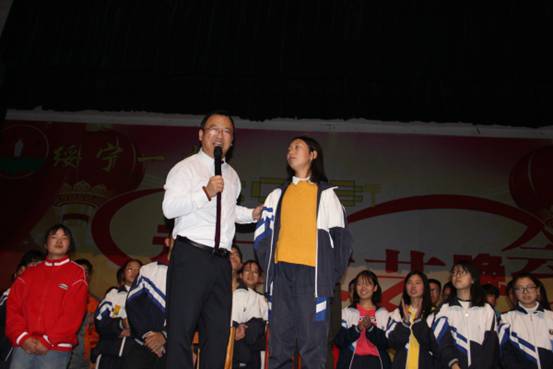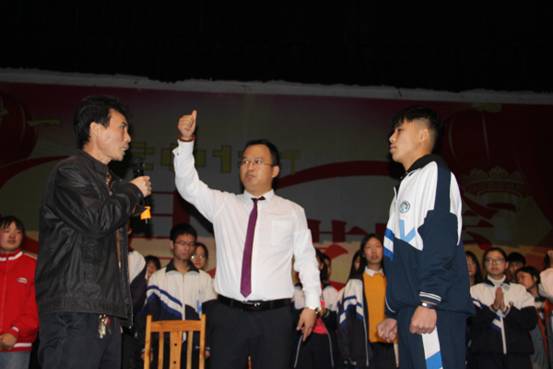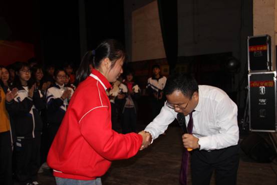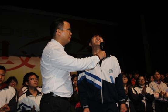 为了增强高三学生迎战高考的信心,帮助学生以良好的心态投入到高考备考中,11月14日,在距离2019年高考200天之际,我校在大礼堂举行“2019届高三高考冲刺二百天誓师大会”,特邀国家注册培训师、著名中高考大专演说家、阳光教育集团高级讲师陈国明先生做“点燃激情、赢在高考”励志演讲。副校长黄立志主持、高三全体师生参加了此次大会。 誓师大会现场标语悬挂,士气高涨,一派隆重而热烈的气氛。在陈国明老师的引导下,同学们两两互相鼓励连续六次击掌,拉开了励志演讲的序幕。陈老师和同学们分享他如何从一个木讷的农家孩子转变成自信演说家的蜕变经历,带领同学们大声的喊出“把辛苦当成幸福,把劳累当成陶醉”等缓解压力的名言,告诉同学们:自信比分数更重要、自信比成绩更重要、成人比成才更重要、用心比用脑更重要。他时而用丰富的肢体动作带领同学们喊出自己的奋斗目标,让所有师生共同见证理想,鼓励加油。时而用深情的话语引导大家闭上眼睛,抛开一切杂念和自己进行一次深度的对话,思考学习的源动力是什么,冥想父母的付出、老师的关爱,从而发自内心的懂得应该怎样做人与处事。所有同学都敞开心扉,接受心灵的洗礼,会议现场响起一次又一次雷鸣般的掌声。 此次誓师大会点燃了一中师生的备考热情,激发了同学们为梦想而努力的斗志,绥宁一中全体高三师生将以更加积极的心态迎接高考,备战高考。相信在全体师生的努力下,2019年6月,一中的高考必将再上新台阶,再创新辉煌!