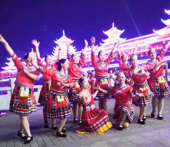 绥宁县“四八姑娘节”前一晚,县城巫水画廊沿河风光带灯火璀璨、人山人海,一片喜庆热闹景象。来自各地的游客和市民纷纷聚集在这里,与苗族阿哥阿妹载歌载舞,体验姑娘节浓厚的民族文化,唱嗨“姑娘节”前奏曲。 我校教师身着节日的盛装,畅享文化盛宴。