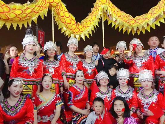 绥宁苗族四八姑娘节是苗家妇女特有的节日。2008年被列为国家级非物质文化遗产。今年的四八姑娘节,我县先后举行了“醉美姑娘”帐篷民宿节、第三届湘西南土货节暨“扶贫盛宴”文旅创意产品展、“仙境飞瀑”360度全景展示、“云端绿洲”热气球飞行体验等活动。通过覆盖各种元素的文化活动,提升姑娘节的影响力,展现了绥宁全方位之美。 本次姑娘节,我校教师合唱团参与快闪《我和我的祖国》的录制以及行歌坐夜的表演,杨兴老师担任快闪钢琴伴奏、指挥和主唱,黄小敏老师担任主唱。教师表演的舞蹈《爱我中华》和学生社团的舞龙等节目获得了观众的一致好评。