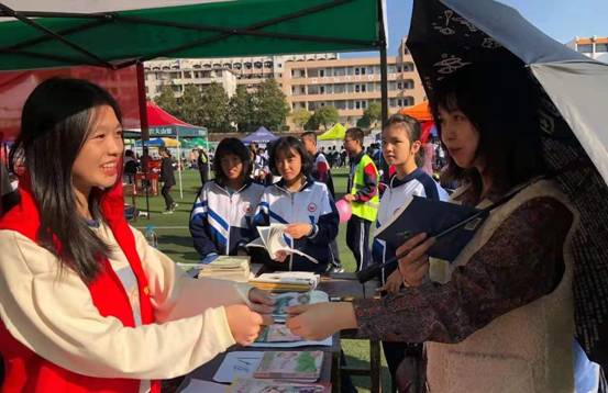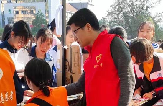 为了加快书香校园建设,在师生中弘扬奉献精神,我校志愿者协会在校团委的指导下,于10月18日至20日在学校秋季运动会其间开展图书捐赠义卖活动。 活动中,志愿者协会的同学们自己动手制作海报,装饰“商铺”,并设计了“售货员”、“会计员”、“推销员”、“环保员”、“宣传员”等角色,大家根据自己的任务各司其职,共收到捐赠书籍354本,价值5000余元,通过义卖筹集资金1640元,全部捐赠给了学校特困基金会。