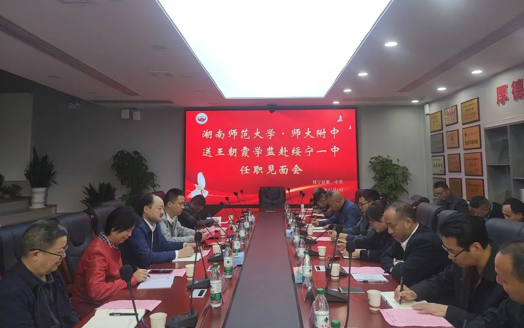 绥宁县地处湘西南边陲,属边远地区、苗侗少数民族聚集区和革命老区,2021年被省委、省政府确定为全省15个乡村振兴对口帮扶重点县之一。自2021年11月湖南师范大学、湖南师范大学附属中学对口援助绥宁教育以来,两校充分发挥人才、智力、教研、资源等方面优势,全方位、深层次做好对口援助绥宁教育工作,在学校管理、师资建设、学科建设、教师队伍、教研合作等方面取得良好成效,实现了省级优质教育资源对绥宁县的精准滴灌。 新任学监的到来,如春风送暖,必将为绥宁教育的发展注入新的动力,为推动绥宁一中高质量发展助力赋能。