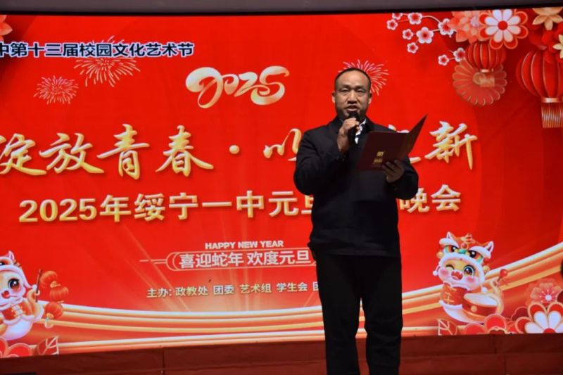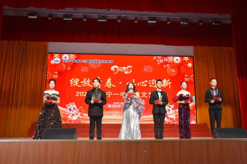 祥龙回首辞旧岁,金蛇起舞迎新年![]() 2024年12月29日19时,绥宁县第一中学的大礼堂内灯火辉煌,人声鼎沸,银屏上“绽放青春,以心迎新”八个字映入眼帘。随着主持人的闪亮登场,绥宁一中2025年元旦晚会正式开启。 晚会节目精彩纷呈,不仅有歌唱、吉他弹唱、长笛与钢琴合奏、舞蹈等极具流行元素的表演,还有心理剧、小品、相声、话剧 、朗诵、幕布剧等传统节目。 学校党总支书记、教育局党组成员邹建新致辞。他代表学校向在过去一年中赓续使命、潜心育人的全体教职员工,向青春昂扬、奋发进取的同学们致以最诚挚的节日祝福! 邹建新书记回顾2024年学校在县委、县政府的高度重视下取得的成绩。他强调,绥宁一中将以“学生全面发展、教师专业发展、学校高质量发展”为目标,推动教育教学改革,培养更多具有创新精神和实践能力的学生。希望全体师生在新的一年中团结一心,自省自新,破旧立新,推陈出新,向未来、共成长,携手书写绥宁一中的辉煌新篇章!” |