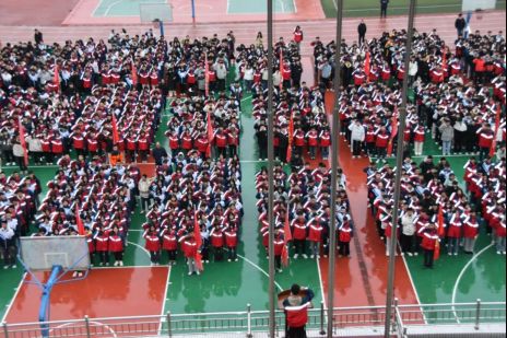 活动在雄壮的国歌声中拉开帷幕,全体师生面向国旗肃立,齐唱国歌。