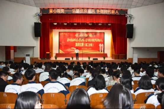4月14日至15日晚,绥宁一中在大礼堂举行“童心向党—弘扬优良家风 争做时代新人”主题演讲比赛。高一、高二年级师生齐聚一堂,以铿锵之声诠释优良家风的时代价值,展现新时代青少年的理想与担当。 参赛选手需围绕主题自拟演讲稿,以5分钟为限,用语言传递家风力量,用行动诠释青春责任。 高二年级比赛现场