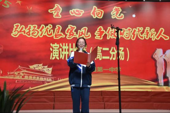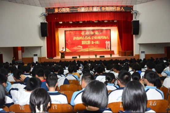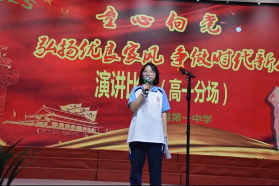高一比赛现场 4月15日晚,高一年级"童心向党——弘扬优良家风,争做时代新人"主题演讲比赛正式启幕。