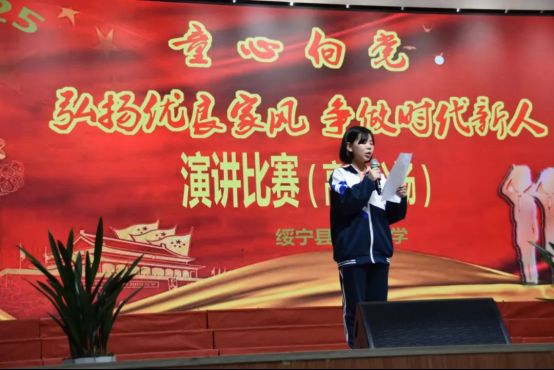 此次演讲比赛是绥宁一中深化德育教育、推进“五育融合”的重要实践,通过讲家风、颂党恩、话成长,引导青少年扣好人生第一粒扣子,为培育全面发展的社会主义建设者和接班人注入精神动力。