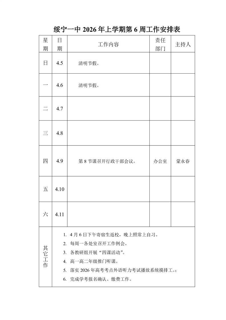 绥宁一中2026年上期第6周工作历