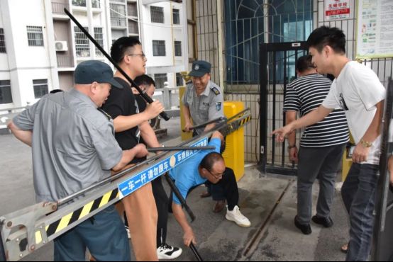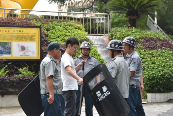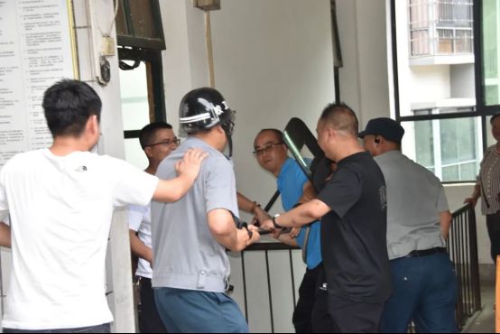 沟通未果,“暴徒”强行冲破防线闯入校园。