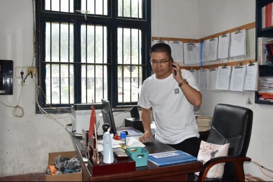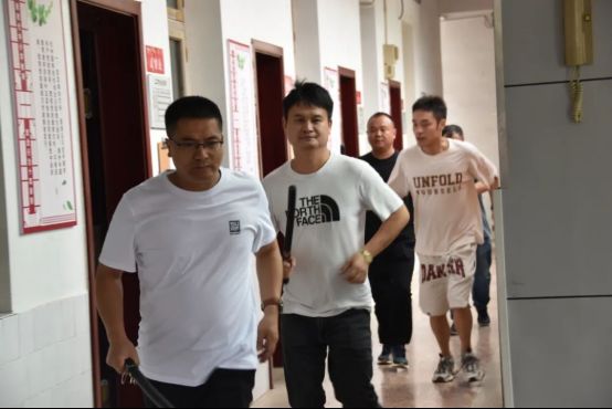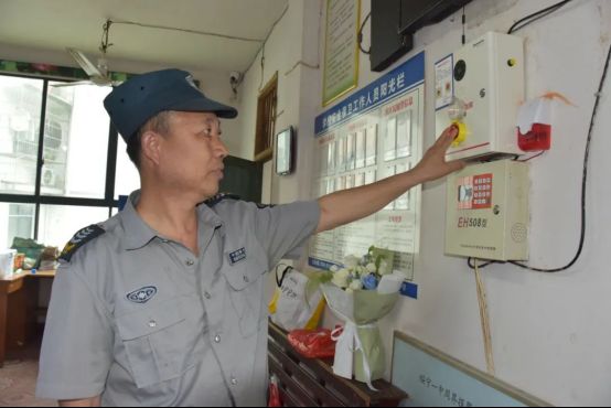 政教处主任黄森祝接到门卫紧急电话 上午9时40分,演练正式拉开帷幕。政教处主任黄森祝在办公室突然接到门卫紧急报警电话——“校门口发现可疑人员持械试图闯入!”