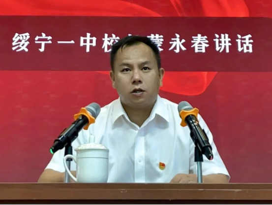 夏贤钦县长从两个方面进行了思政课讲授。第一个方面,要回望过去,坚定自信自强的信念,凝聚勇毅前行的庞大力量。夏贤钦指出,绥宁是块英雄的土地,红军长征四次征战绥宁,作为新时代青少年,应传承红色基因、弘扬革命精神,切实感受我国过去十年的伟大变革,弘扬中华民族源远流长的优秀文化,汲取智慧力量,自信自强投身国家建设。 第二个方面,要立足当下,抓牢重点难点关键点,在新时代新征程上办人民满意的教育。夏贤钦强调,当前,我县教育有较大提升,得到群众更多的认可,但与群众对高质量教育的需求、周边县市水平相比仍有差距。需要以绥宁一中为示范,通过帮扶合作办学等改革,推动全县教育综合提升。全体教师要努力坚守初心使命、加强师德培养、锻造过硬本领、始终热爱学生,充分施展抱负和才华,倾心奉献智慧与力量,争当人民满意的好教师,真正做到用教育温暖人、凝聚人、激励人、感召人、教化人。新时代优秀青少年要立大志,锚定人生方向;勤学习,铸就卓越能力;强意志,直面风雨磨砺;勇担当,回应时代召唤;肯奋斗,砥砺青春底色。要坚定理想信念,勇担时代使命,锤炼过硬本领,矢志艰苦奋斗,将个人追求融入国家发展伟业,努力成为堪当民族复兴重任的先锋力量。 夏贤钦县长最后寄语绥宁一中全体学生,既仰望星空立大志干大事,又脚踏实地干实事求实功,大胆追梦圆梦,自信自强、向新而行,真正让自己成长成才、学业事业出新出彩! 03校长寄语 指明方向
