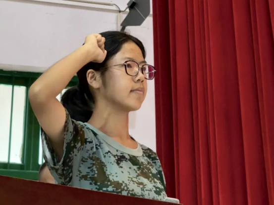 学生代表杨倚分享了自己的学习感悟,号召同学们珍惜时光,勤奋学习,以积极的心态面对挑战,用实际行动实现自己的梦想。 05铿锵誓言 砥砺前行