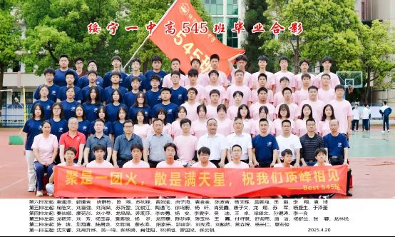 班主任寄语:在545班的朝夕相伴中,我们共同完成了这场盛大的成长仪式。最后一课的黑板擦得格外明亮,就像你们即将开启的人生新篇章。数字"5"是五育并举的全面发展,"4"是四时充美的生命状态,"5"更是五彩斑斓的未来图景。愿你们永远记得晚自习时笔尖与纸张的私语,那是青春最动听的奏鸣曲。