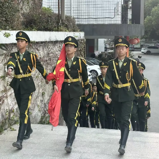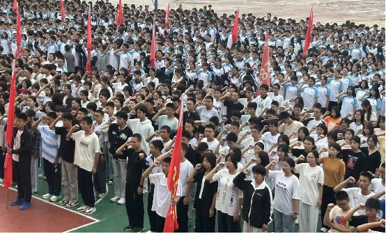 国旗护卫队以挺拔的姿态护送国旗入场,全体师生肃立,行注目礼,国歌声响彻校园——这抹鲜红在晨光里升起的不仅是旗帜,更是绥宁一中全体师生对家国的赤诚与担当。 青春誓言,理想铿锵