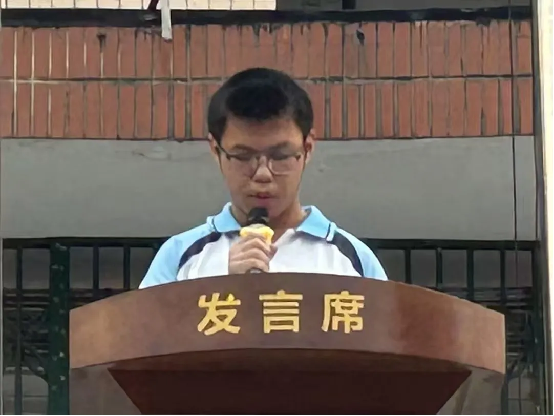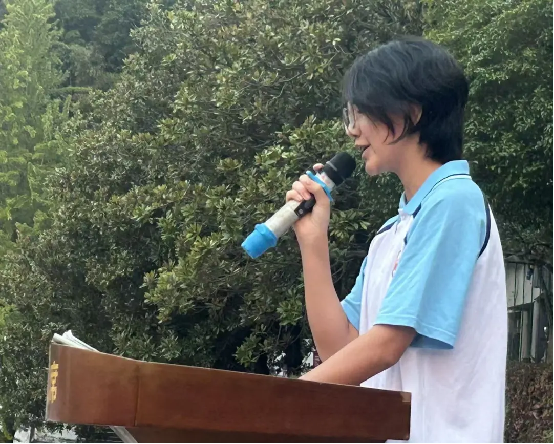 599班林欣雨同学带领全体同学庄严宣誓:“我是绥宁一中学生,我宣誓:崇德尚学,德智体美劳良;弘毅笃行,做到学有所长;脚踏实地,勤奋书写梦想;志存高远,理想指引方向;自尊自爱,自信相伴成长;自立自强,拼搏成就辉煌!