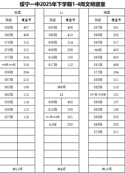 绥宁一中2025年下学期1-4周文明班级、明星班主任