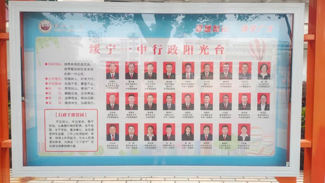 雪峰山下,巫水河畔,矗立着一所有着90年历史的湖南省示范性普通高级中学:绥宁县第一中学。它拥有山的厚重、山的博大,始终走在教育改革浪潮的前列。它以山的灵秀滋养师生的智慧,以山的厚重涵养师生的品格,以山的俊美润养师生的心灵,形成了“厚德如山,博学广才”的校训;它以独特的“山品文化”引领师生的成长和学校的发展,让踏实、淳朴、坚韧、攀登的品质伴随师生的一生。