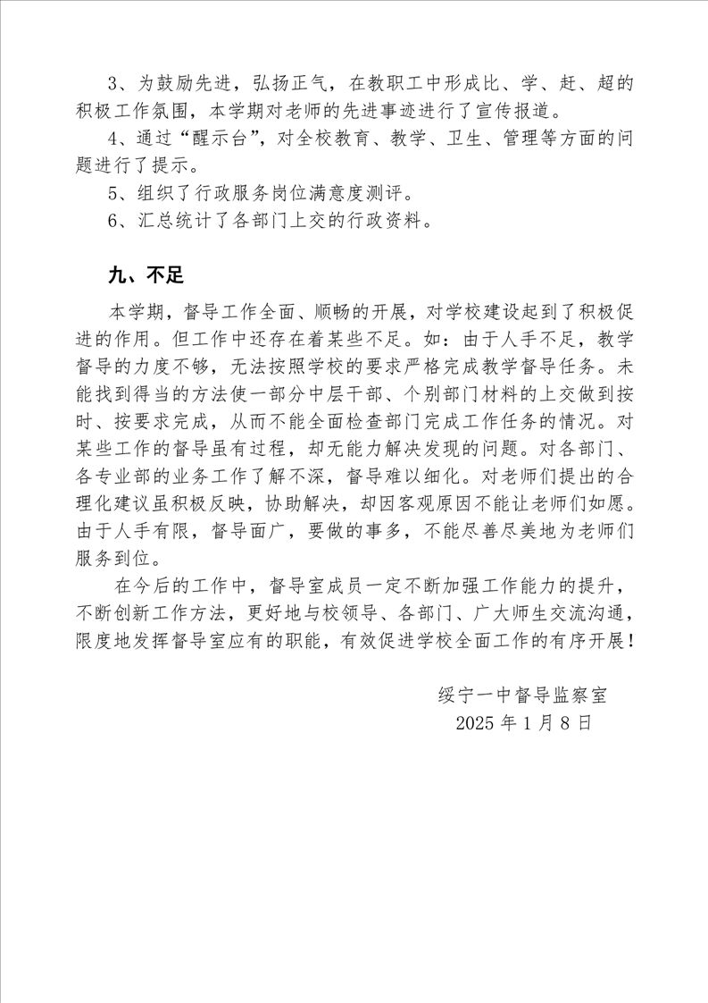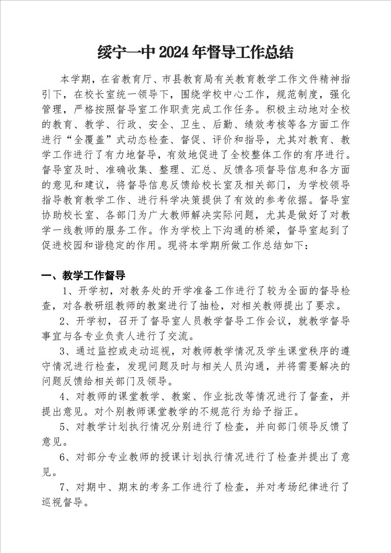 绥宁一中2024年督导工作总结