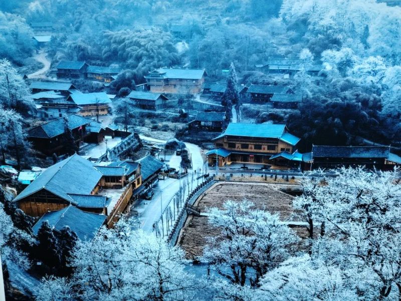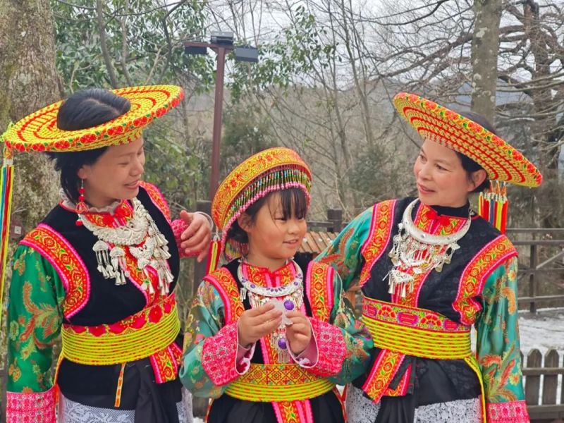 最高处的山门处,一顶朱红瑶帽在雪幕中灼灼生辉。老师们终于懂得"云上花瑶"四字的分量——这里不是地理概念,而是天地共谋的童话剧场。