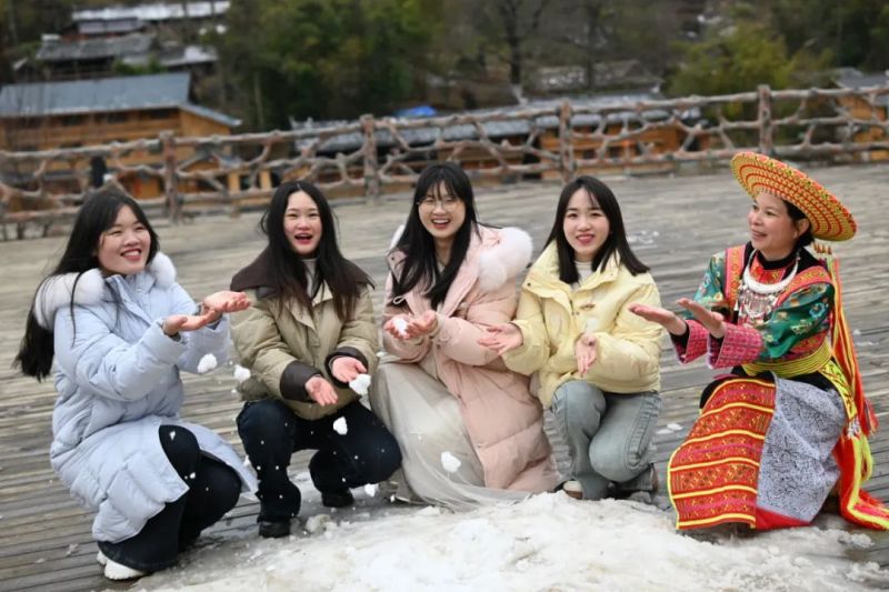 行程中突遇三月飞雪,云海雪原中的瑶寨梯田呈现“四季同框”奇景。地理老师结合高海拔气候特征分析降雪成因,语文老师以“春雪与梯田”为主题开展诗歌创作,实现自然现象向教学资源的转化。