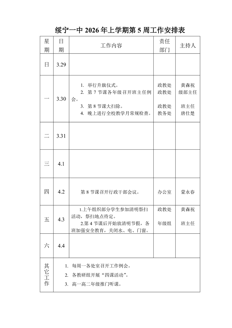 绥宁一中2026年上期第5周工作历