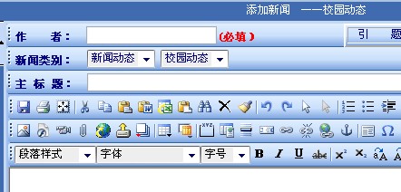 在以上窗口中,输入作者姓名,点击新闻类别选项框中的三角形按扭选择类别,输入标题,在内容框中输入内容或直接从word等文字编辑软件中复制粘贴。选择好字体字号,单击下方提交按钮即可。 |