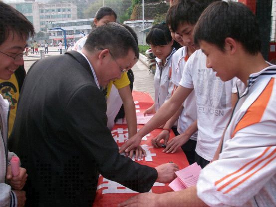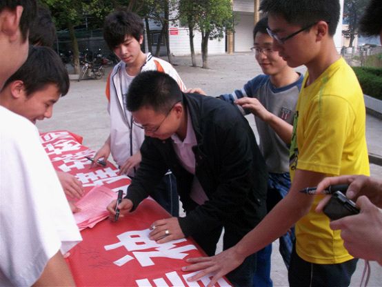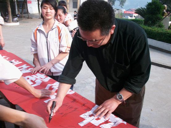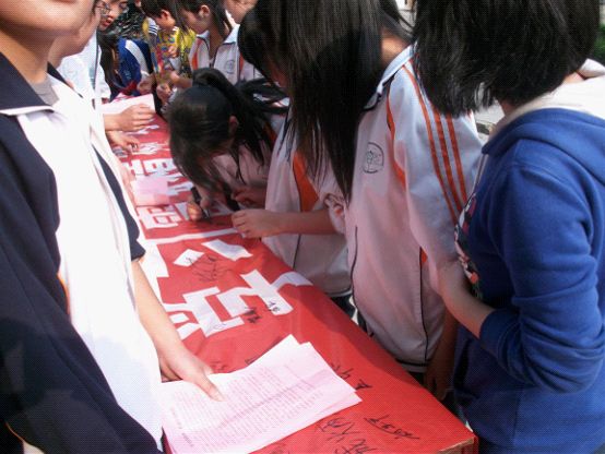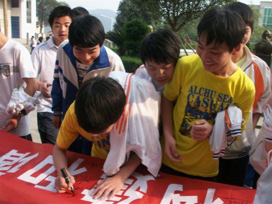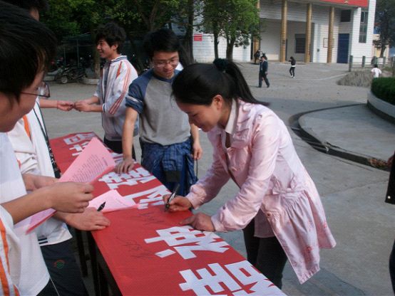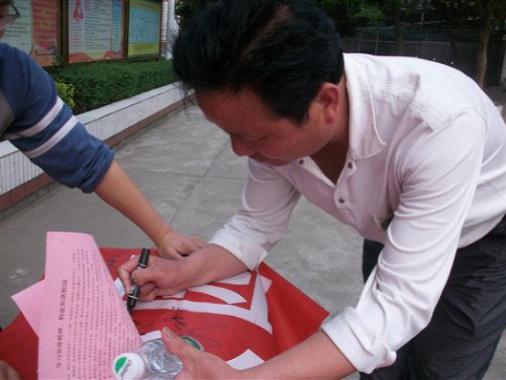 学习雷锋精神 构建和谐校园 ------ 绥宁一中353班学雷锋活动 绥宁一中为深入开展学雷锋活动,制定了教师和学生学雷锋活动方案,全校师生积极采取行动,以各种形式办实事,学雷锋。4月11日第7、8节课,353班班委会举起“学习雷锋精神,构建和谐校园”横幅来到办公楼前,发放倡议书近千余份,号召全体师生要以实际行动来向雷锋同志学习,从我做起,从身边的小事做起,共同构建和谐校园,让师生把雷锋精神当作自己永远做人的道德标准。 唐立新校长、来我校考察的城步一中刘校长及近千名师生在横幅上签下自己的名字,表达自己“学习雷锋精神,构建和谐校园”的决心。