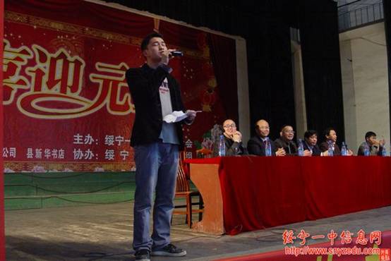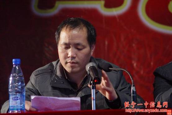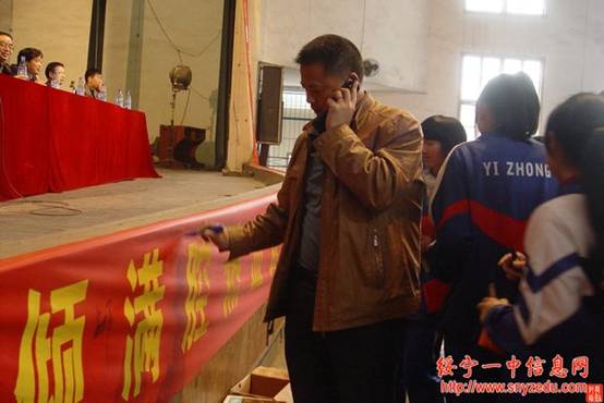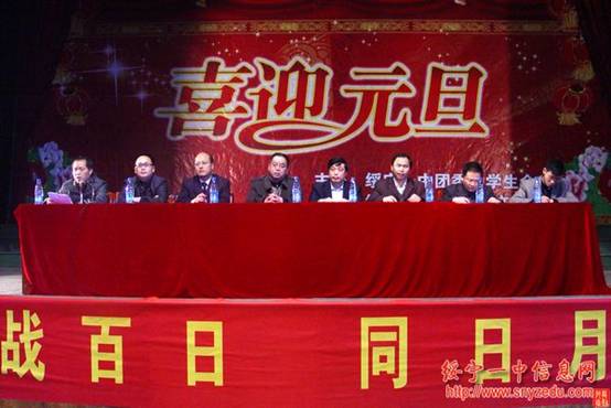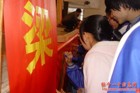 2011年2月26日上午8点,绥宁一中在大礼堂召开高三年级高考百日冲刺誓师大会。高三年级全体师生参加了大会,教育局招生办主任杨宗照、绥宁一中校长唐立新、党总支书记肖华平、副校长贺占宏、周本流、黄立志、教务主任袁仕进、高三年级组长唐俊文出席了大会。 誓师大会由肖华平书记主持。在誓师大会上,首先由唐俊文组长做了高考百日冲刺动员报告。他分析了高考的现状,明确了百日冲刺的意义,鼓励同学们刻苦学习,拼搏一百天,夺取高考的全面胜利。然后,贺占宏副校长、唐立新校长、杨宗教主任先后做了讲话,领导们从学习方法、如何树立必胜的信心等对学生们进行了指导,并承诺为学生提供优质服务。随后由高三教师代表肖建军老师、高二学生代表陆玉健、高三文科代表陈尧、高三理科代表肖目舒发言。最后全体高三学生起立,在肖目舒同学的领誓下进行了庄严宣誓。 会后,学校领导、高三年级教师及同学们在百日誓师横幅上签上了姓名,表达了他们决胜高考的决心和高考必胜的信心。