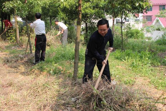 4月23日下午,我校以支部为单位组织全体党员义务劳动,对校园内的卫生死角和体艺馆和食堂后面的杂草进行打扫清理。 党员们自带着铁锹、锄头、柴刀等工具在党总支书记肖华平、校长唐立新的带领下不怕脏,不怕累,将整个校园的卫生及死角、杂草清理的干干净净,校园清新宜人,焕然一新。这次活动是我校党总支开展“创先争优”系列活动之一,全体党员在党总支的带领和号召下,积极投入到这项活动中去。 通过党员义务劳动,党员们把“创先争优”活动的精神实质体现在了点滴行动上,在群众中树立良好的模范作用,受到师生们的普遍好评,使党员的形象得到了提升,使党性在实践中闪光。活动的开展也进一步增强了党员教师们的责任感和光荣感,进一步加强了党组织的凝聚力。