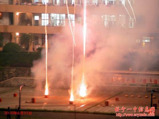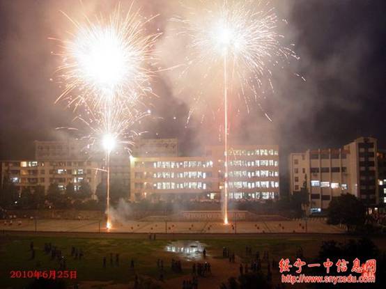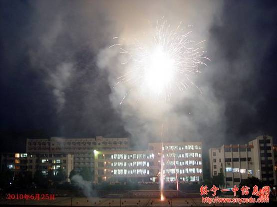 绥宁一中为庆贺刘芝君同学考上北京大学燃放烟花