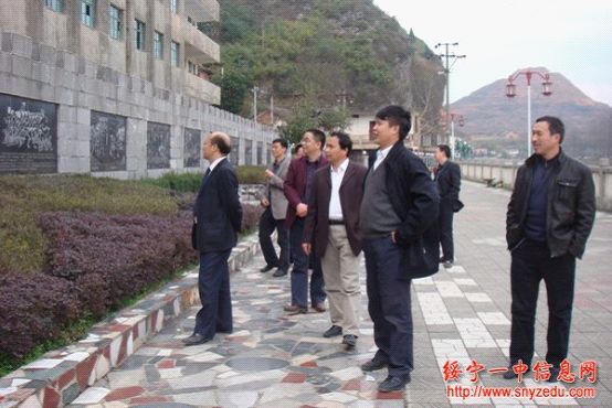 城步一中校长刘子松等陪同县一中领导参观城步县城文化建设.