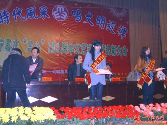 3月8日,春意融融,春光明媚,绥宁县委宣传部、组织部、妇联在县影剧院隆重举行绥宁县庆“三八”101周年文艺汇演暨表彰大会,我校谢金花老师荣获绥宁县“巾帼建功”标兵荣誉称号。 谢金花,女,29岁,毕业于湖南科技大学,英语专业八级,2005年聘任到我校任教。 谢金花老师工作认真负责,教学上刻苦钻研。她在学校的教学比武活动中两次获一等奖,辅导唐红和苏洁琼同学获得全国中学生英语能力竞赛湖南省高三年级“二等奖”。2010年高考中,她所教的279班刘芝君(邵阳市文科状元)同学考上北京大学。刘芝君、唐红两位同学高考英语成绩均为141分,是全县高考英语的最高分。她所教毕业班的人平分113分,也是全县最高。