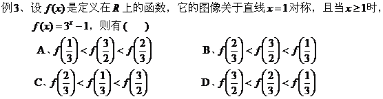 数值的大小。 二、利用函数的周期性: 例2、已知 A、 解析:已知 设 ∴ 点评:利用函数的周期性可将自变量对应的函数值转化到同一区间内所对应的函数解析式下求值或同一单调区间内比较函数值的大小。 三、利用函数图像的对称性: