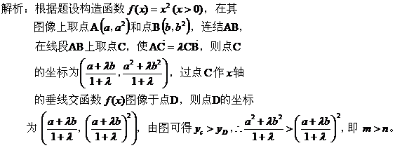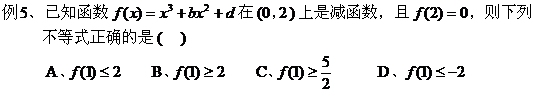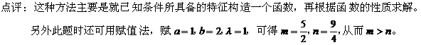 点评:根据函数图像的特性并结合函数性质,可得出相关量间的不等关系。 五、结合导数,利用函数的单调性: