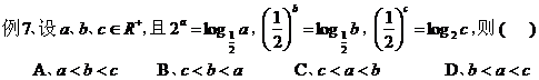 点评:根据题设条件将比较大小的量化归为同一种函数所对应的函数值,再根据这种函数的单调性进行大小比较。 七、数形结合思想:
